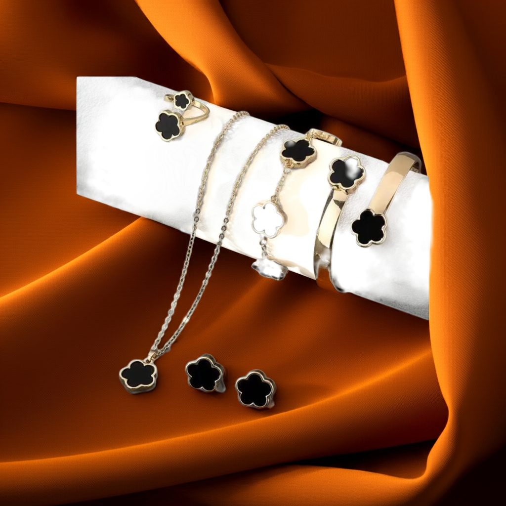 1 pc necklace +2 pc Bracelet + 1 pair of Earrings+1pc ring