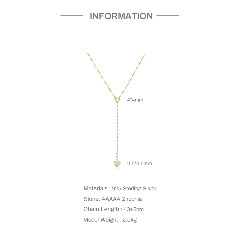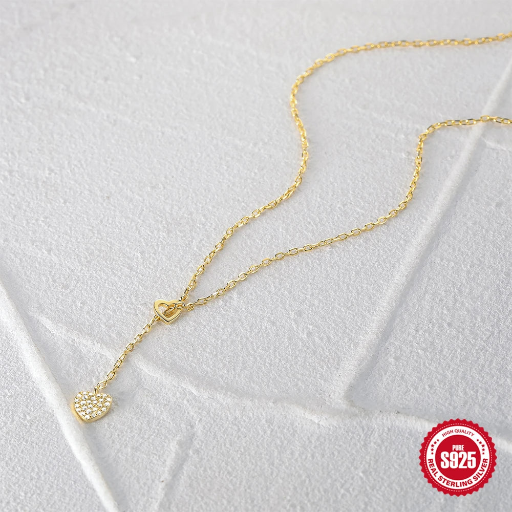 AIDE 925 Sterling Silver Adjustable Chain Heart Pendant Charm Zircon Necklace Drop Choker Resizable Women Girl Sexy Fine Jewelry